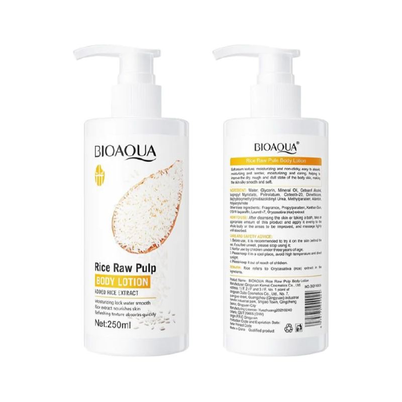 La Crema con Loción de Arroz BIOAQUA hidrata y nutre profundamente la piel del rostro y cuerpo. Su fórmula ligera pero efectiva proporciona un brillo saludable, mejora la elasticidad y ayuda a unificar el tono de la piel.