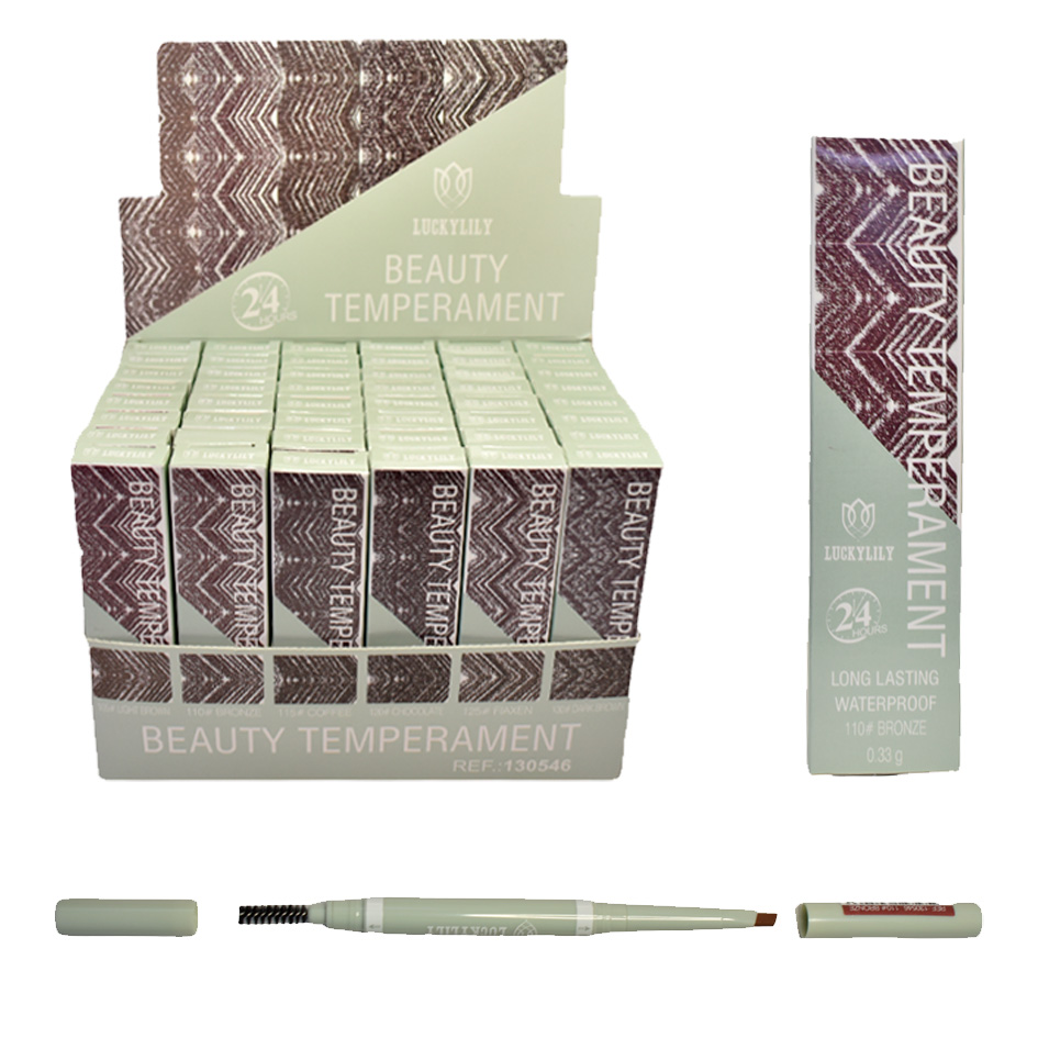 Delineador de cejas de la marca chilena Lucky Lily en su presentación Beauty Temperament, es un perfeccionador de cejas que define, perfila y rellena las cejas. Gracias a su fórmula de larga duración, la ceja se rellena con un acabado espectacular a prueba de todo.