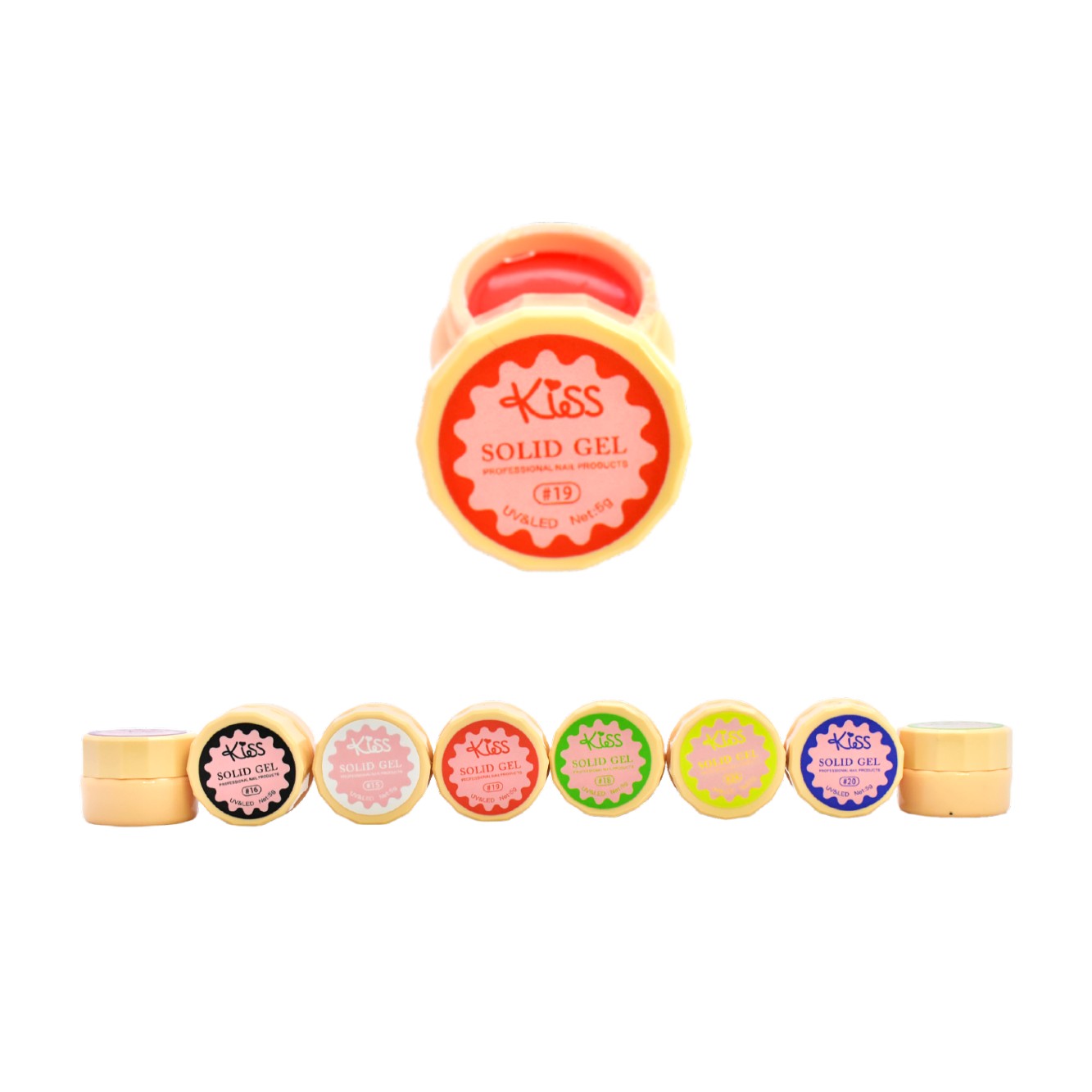 Gel sólido UV led Kiss 5g presentación frasco color piel