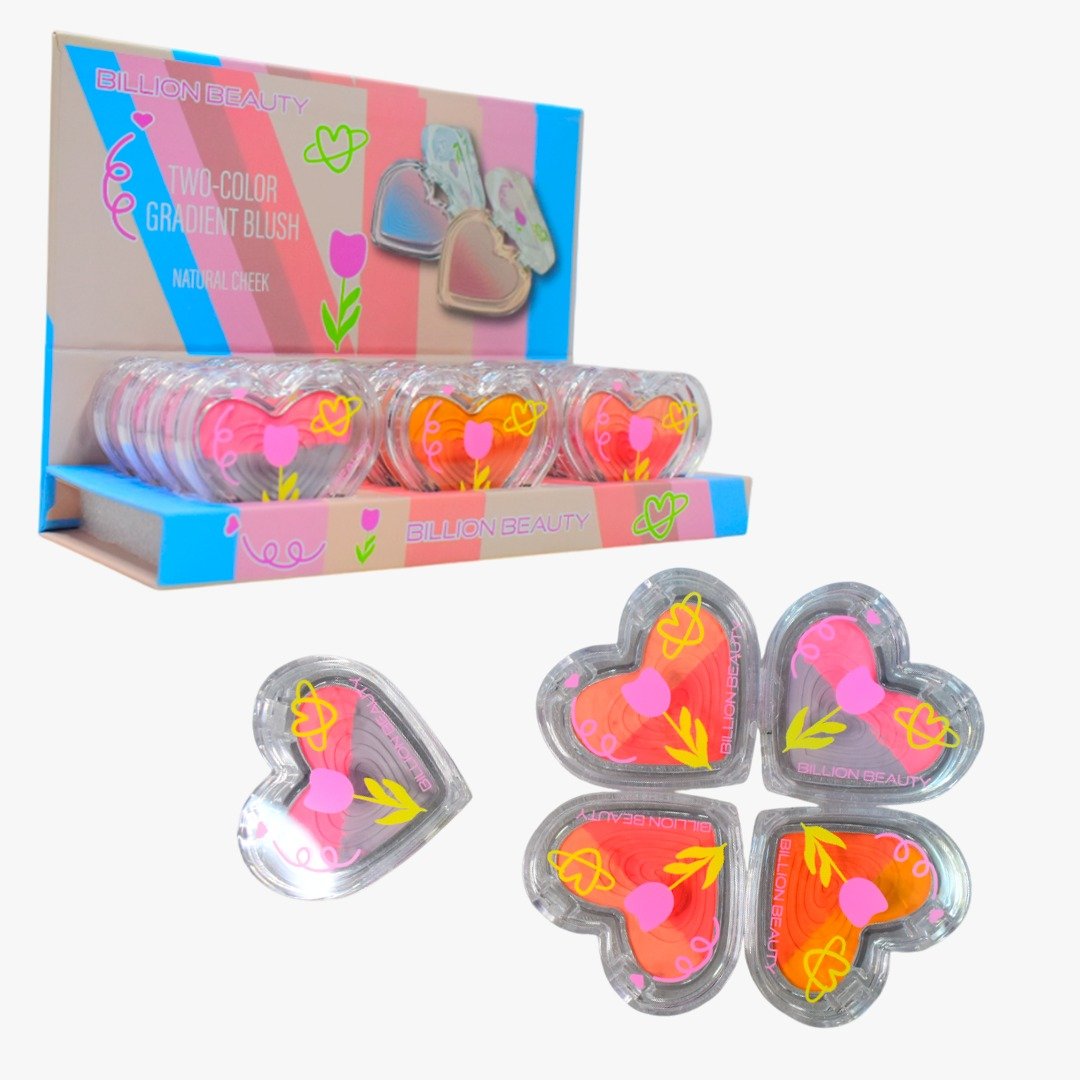 Rubor en tonos difuminados de Billion Beauty que proporciona un acabado natural y radiante. Su fórmula sedosa se mezcla fácilmente en la piel, creando un efecto degradado que realza las mejillas con un toque de color sutil y elegante.